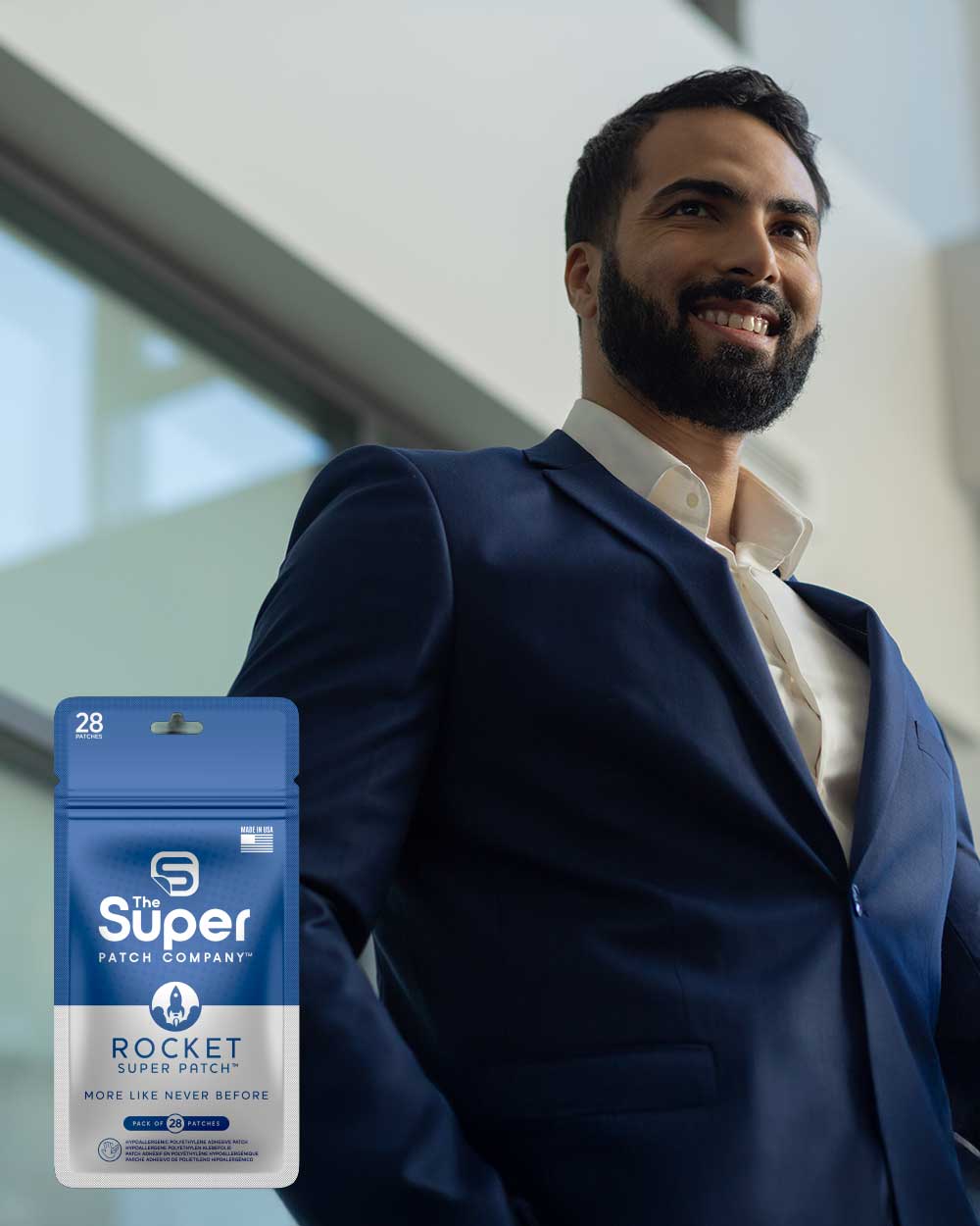 Super Patch Rocket es un parche diseñado para hombres que desean recuperar su energía, vitalidad y desempeño con una solución natural, no invasiva y libre de fármacos. Esta tecnología vibrotáctil (VTT) activa la conexión mente-cuerpo mediante un diseño especial de contornos sobre la piel, favoreciendo una respuesta corporal que impulsa sensación de vigor, claridad mental y predisposición física.